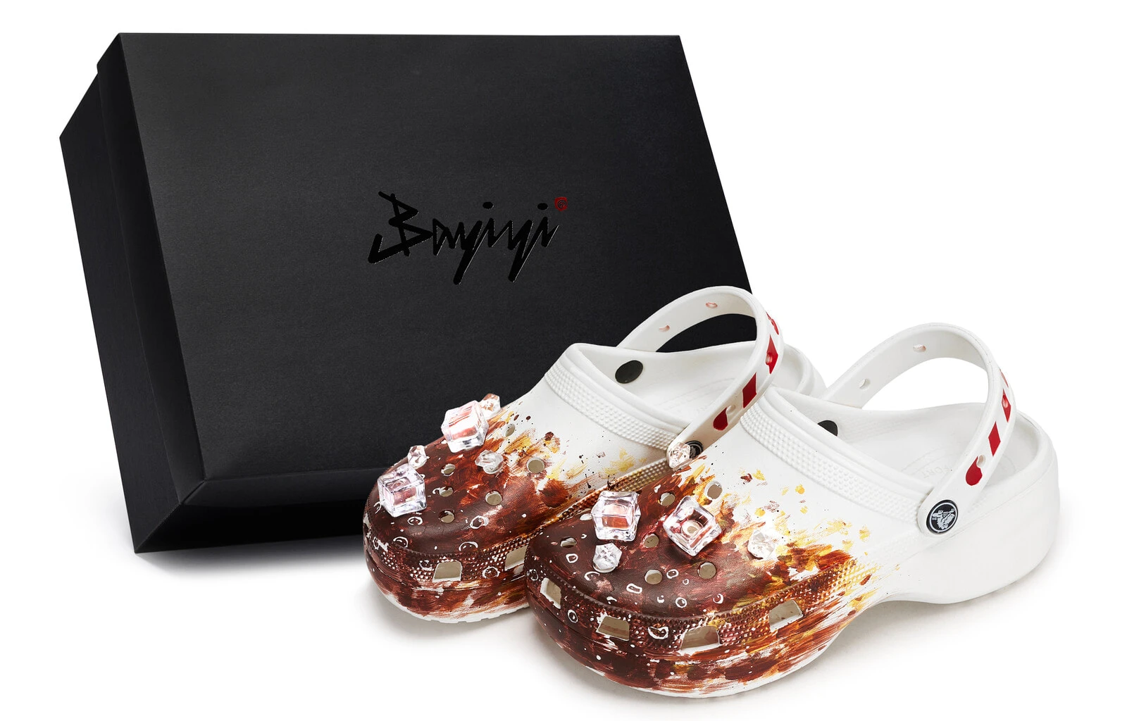该定制鞋选用原鞋为Crocs卡骆驰 Classic clog 经典云朵克骆格复古沙滩 洞洞鞋 女款 白色,货号为206750-100。整体以白色为主色调,宛如一张白纸。鞋头处红棕改色擦色设计,仿佛是倾倒而下的可乐在鞋面留下的细腻痕迹。鞋面扣有可拆卸冰块配件,恰似向可乐中加入了晶莹剔透的冰块,为鞋子增添了趣味性与互动性。定制鞋可以正常穿洗,穿着过程中尽量避免剧烈运动以及尖锐的物体划伤,请避免用高浓度有机溶剂擦洗,清洗时建议使用柔软的毛刷配合浓度适宜的清洗剂清洁。本图为实物拍摄,实物图案颜色会存在微小变化。定制鞋均为纯手工定制,每双鞋会存在一定细微差异。附赠特殊鞋盒一个。